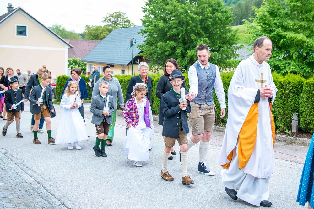 Unter dem Motto „Mit Maria unterwegs zu ihrem Sohn Jesus“ empfingen heuer folgende neun Kinder der VS Landl zum ersten Mal die Heilige Kommunion: